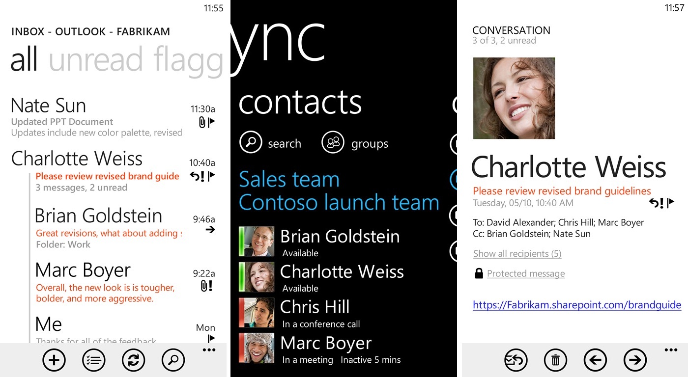 - Переписка по SMS, в Facebook и в Windows Live Messenger будет представлена общим диалогом, теперь не придется переключаться между программами для чтения сообщений от друзей.