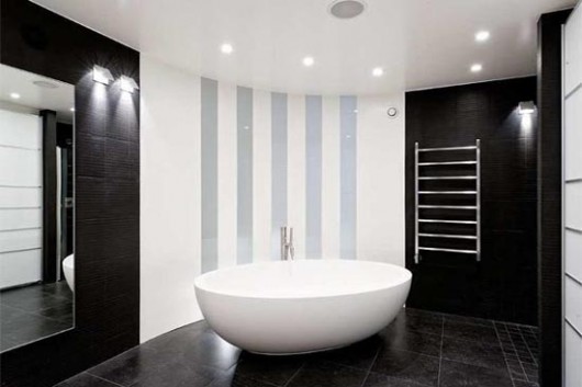 Эти потрясающие апартаменты располагаются в Швеции. Дизайнер решил разместить их в довольно старом здании и вдохнуть новую жизнь в унылые серые стены. Надо сказать, ему это удалось. Получилось два этажа настоящего люкса. Стоит отметить, что кухня на втором этаже — это довольно смелое решение, однако, в данном случае, выполнено абсолютно гармонично!