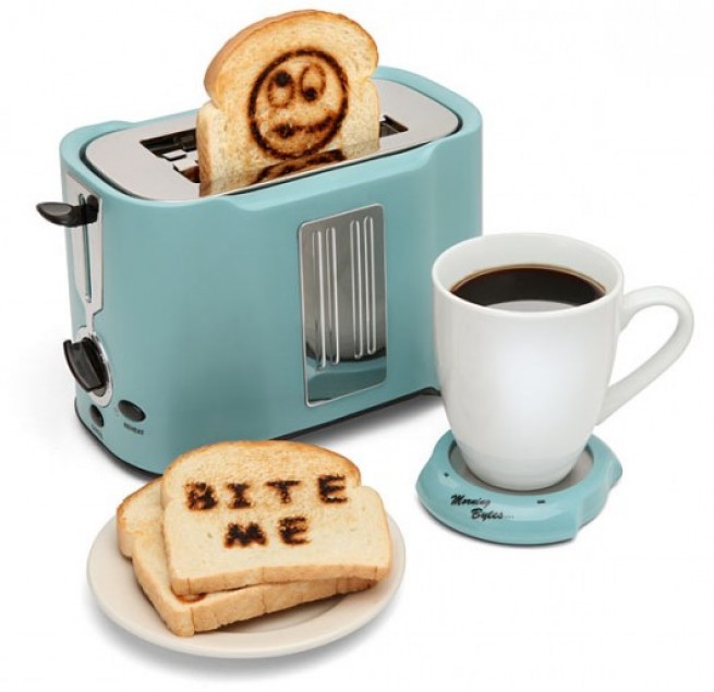А вот Pop Art Toaster, который умеет «печатать» на тостах фразы «укуси меня!», «да, дорогой», сможет сделать утро веселее всего за 45 баксов. Есть варианты за 30 и за 125 баксов, поэтому выбрать труда не составит.